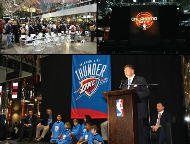 俄克拉荷马商人克莱·贝内特收购超音速,并通过极具争议的手段将球队搬迁到俄克拉荷马,让这个不算繁荣的地方,第一次体验到拥有北美四大运动赛事球队的感觉。虽然雷霆继承了超音速队史,但球队有意和西雅图切断关系,而超音速时期退役的球衣号码,虽然没有挂在雷霆主场上空,但也没有雷霆球员使用。